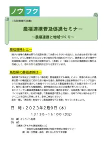 2月9日(木)に開催する農福連携普及促進セミナーのご案内です。