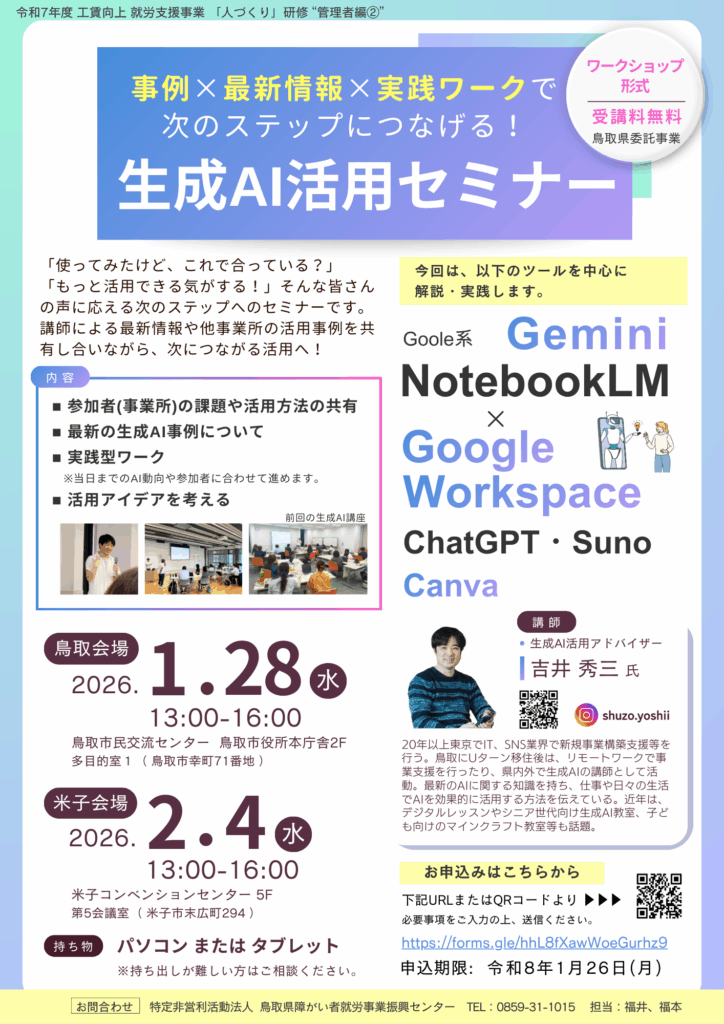 【鳥取会場】令和8年1月28日(水) 13:00~16:00